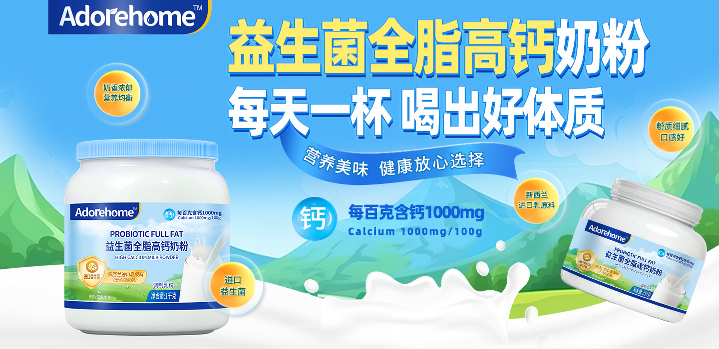 Adorehome益生菌全脂高鈣奶粉,新西蘭進(jìn)口乳原料,每100g含鈣1000mg,添加進(jìn)口益生菌,營(yíng)養(yǎng)美味,粉質(zhì)細(xì)膩口感好,每天一杯,喝出好體質(zhì)。
