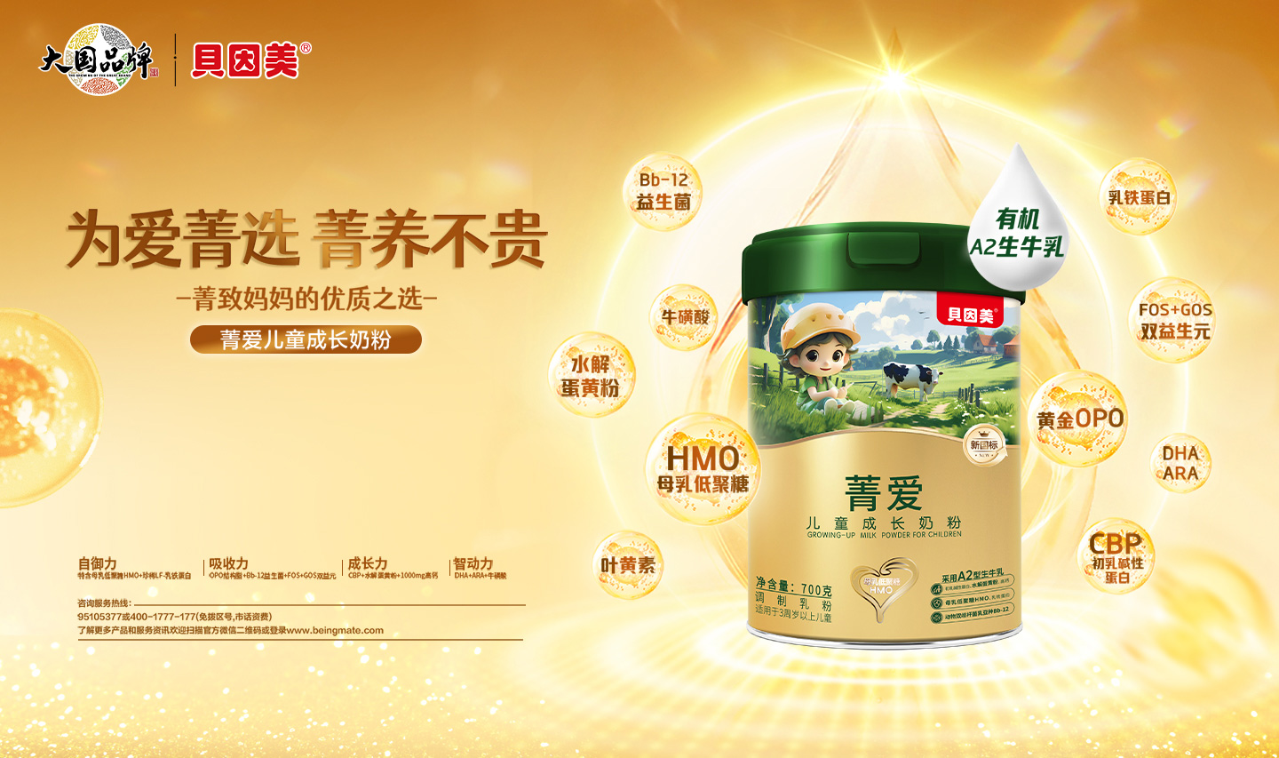 美廬優(yōu)培幼兒配方奶粉,優(yōu)培草飼奶源,好奶源造好奶粉!五大營(yíng)養(yǎng)群,超牛保護(hù)力、傧Γ旱途郯肴樘、低聚果糖、乳雙歧桿菌HN019;②骨骼力:酪蛋白磷酸肽、維生素D、維生素K;③自護(hù)力:乳鐵蛋白、核苷酸;④認(rèn)知力:膽堿、牛磺酸;⑤視護(hù)力:葉黃素、維生素A。全面營(yíng)養(yǎng)守護(hù),守護(hù)成長(zhǎng)健康,萬(wàn)千媽媽的信賴之選!