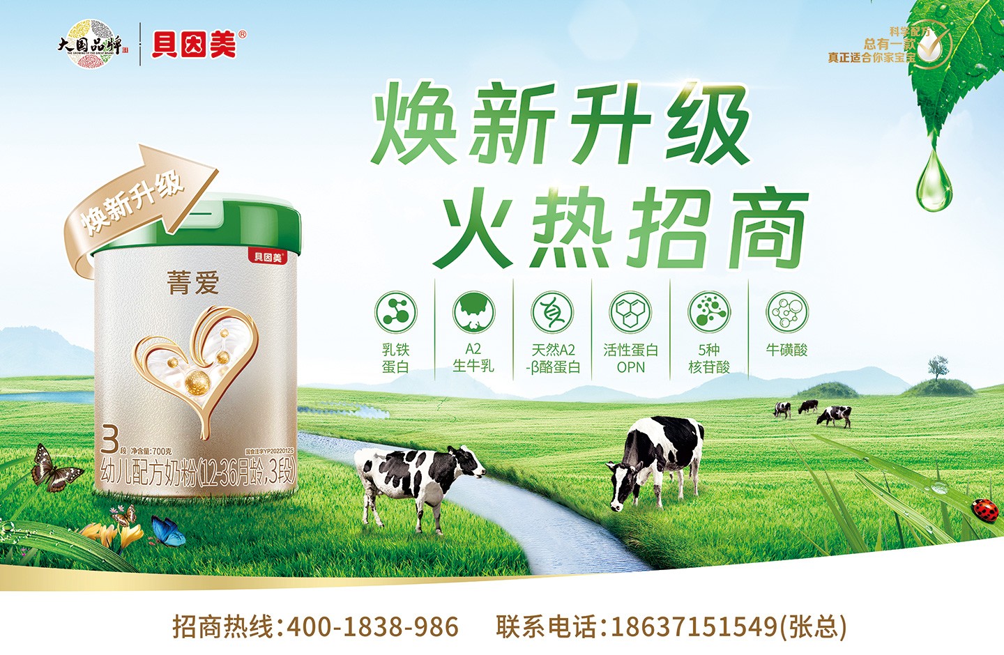 品牌名稱:貝因美 主營(yíng)產(chǎn)品:貝因美菁愛(ài)幼兒配方奶粉 品牌特色:純凈有機(jī)A2奶源 干濕復(fù)合工藝